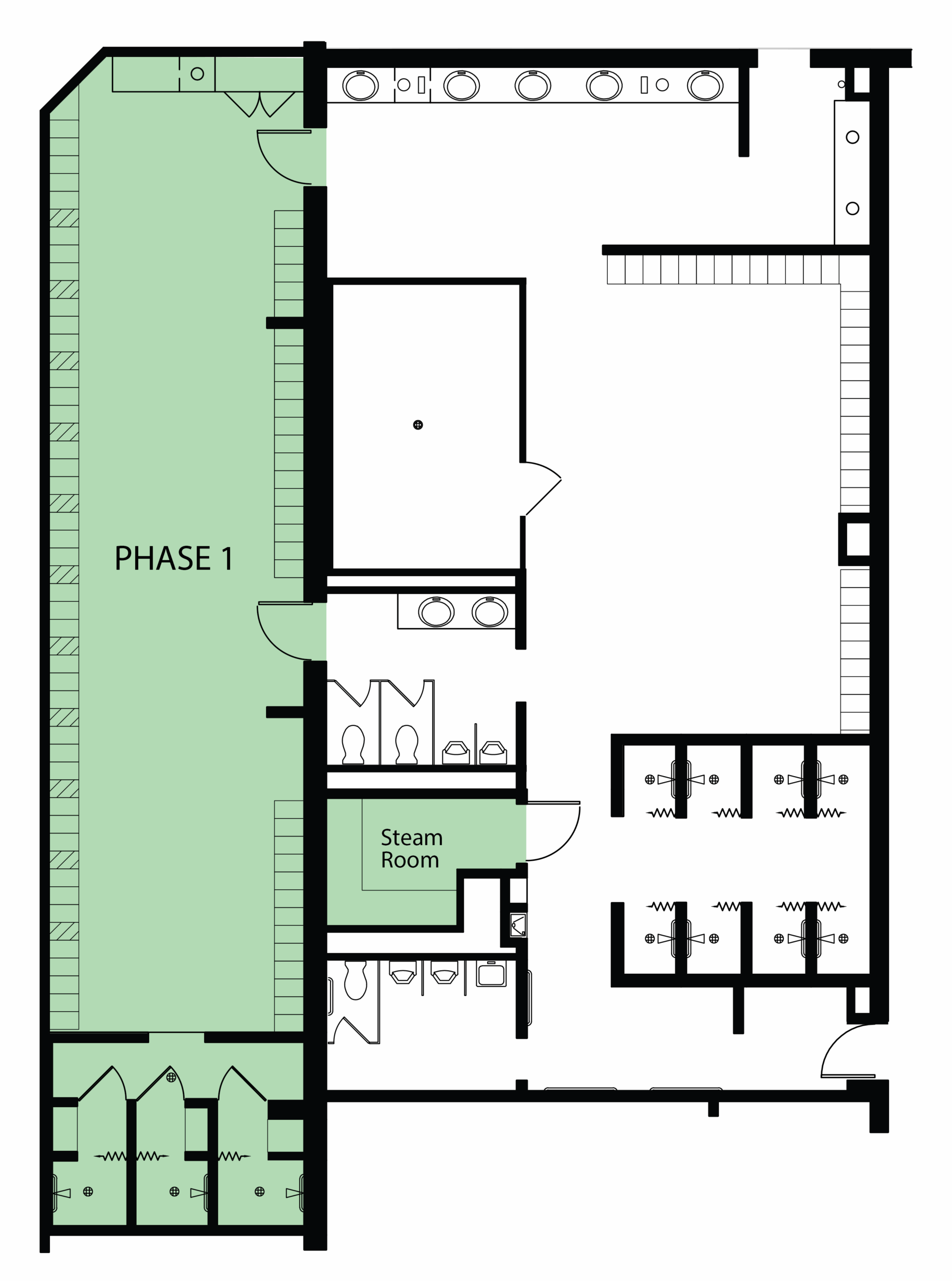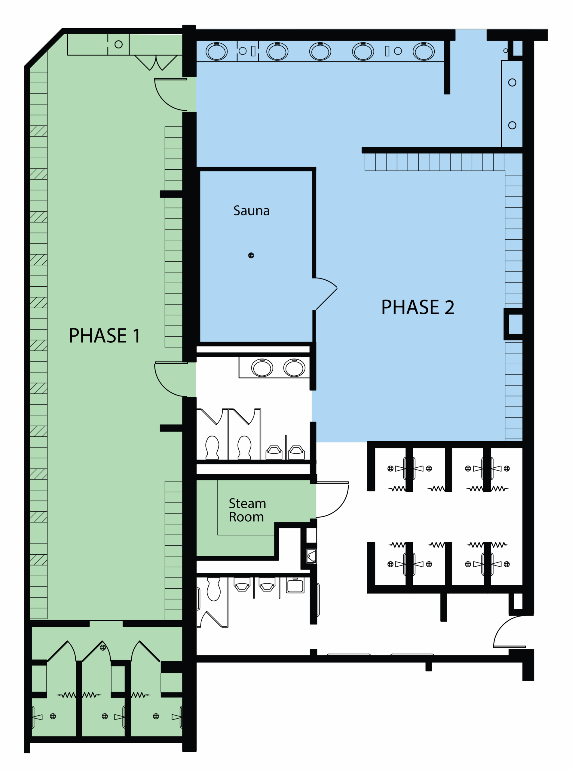 During this phase, entry into the Men’s Locker room will be through the pool door, via the Family Changing Room.