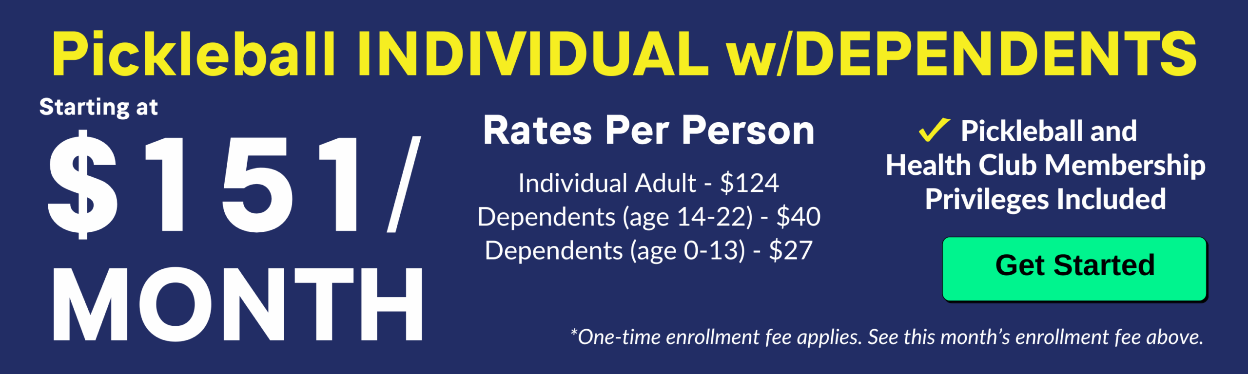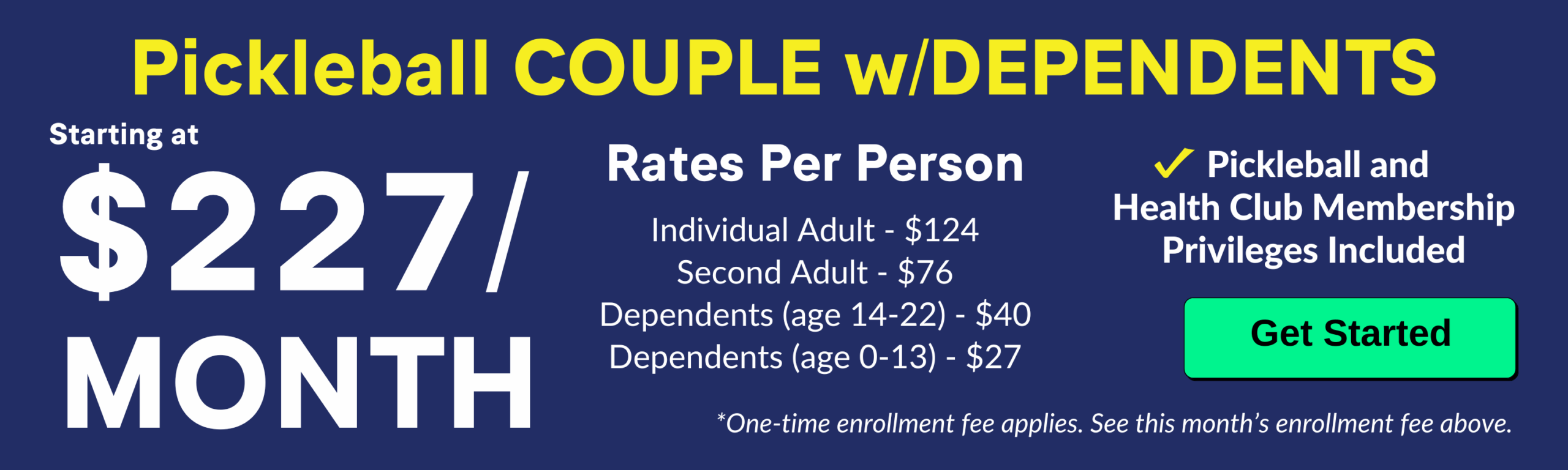 Guests age 0-13 are $10 per person; Guests age 14+ are $15 per person; Tennis/Pickleball is $20 per person.