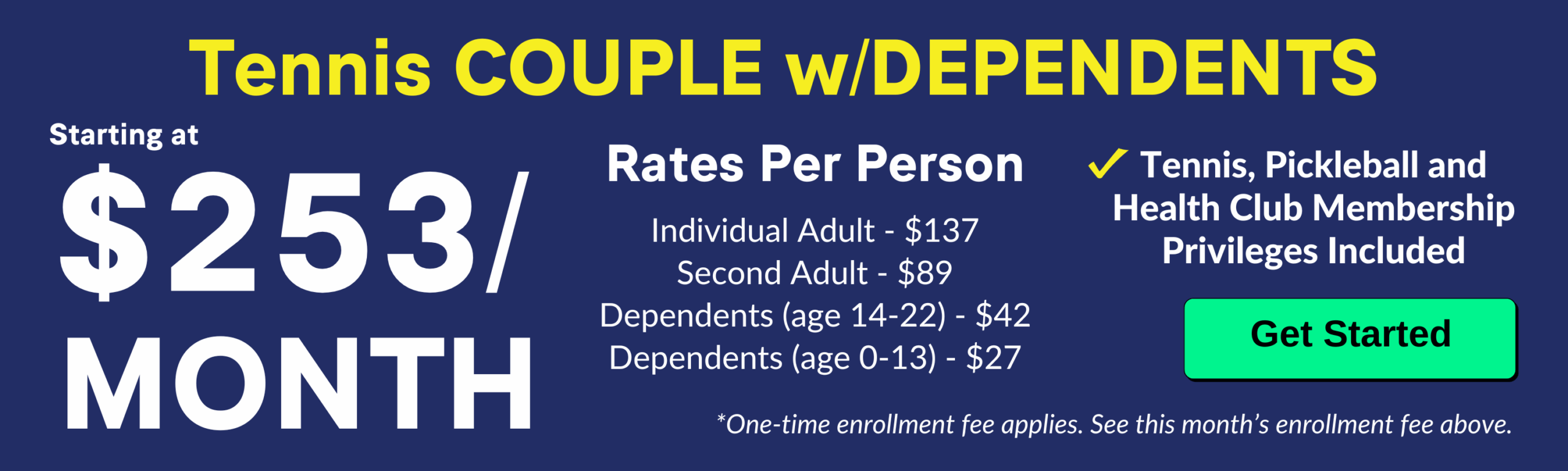 Guests age 0-13 are $10 per person; Guests age 14+ are $15 per person; Tennis/Pickleball is $20 per person.